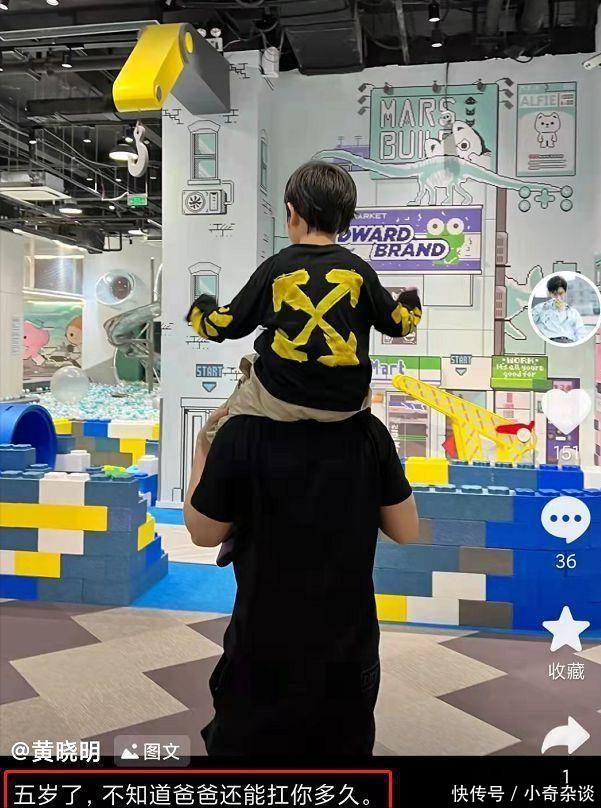 “小海绵”五岁的时候,黄晓明还发布过一张相片,相片中他将小海绵扛到了我方的肩膀上,拍摄相片的地点是一个游乐场,不言而谕,小海绵其时该有何等幸福了,黄晓明在案牍中写说念:“五岁了,不知说念爸爸还能扛你多久”,将深千里的父爱体现得大书特书。